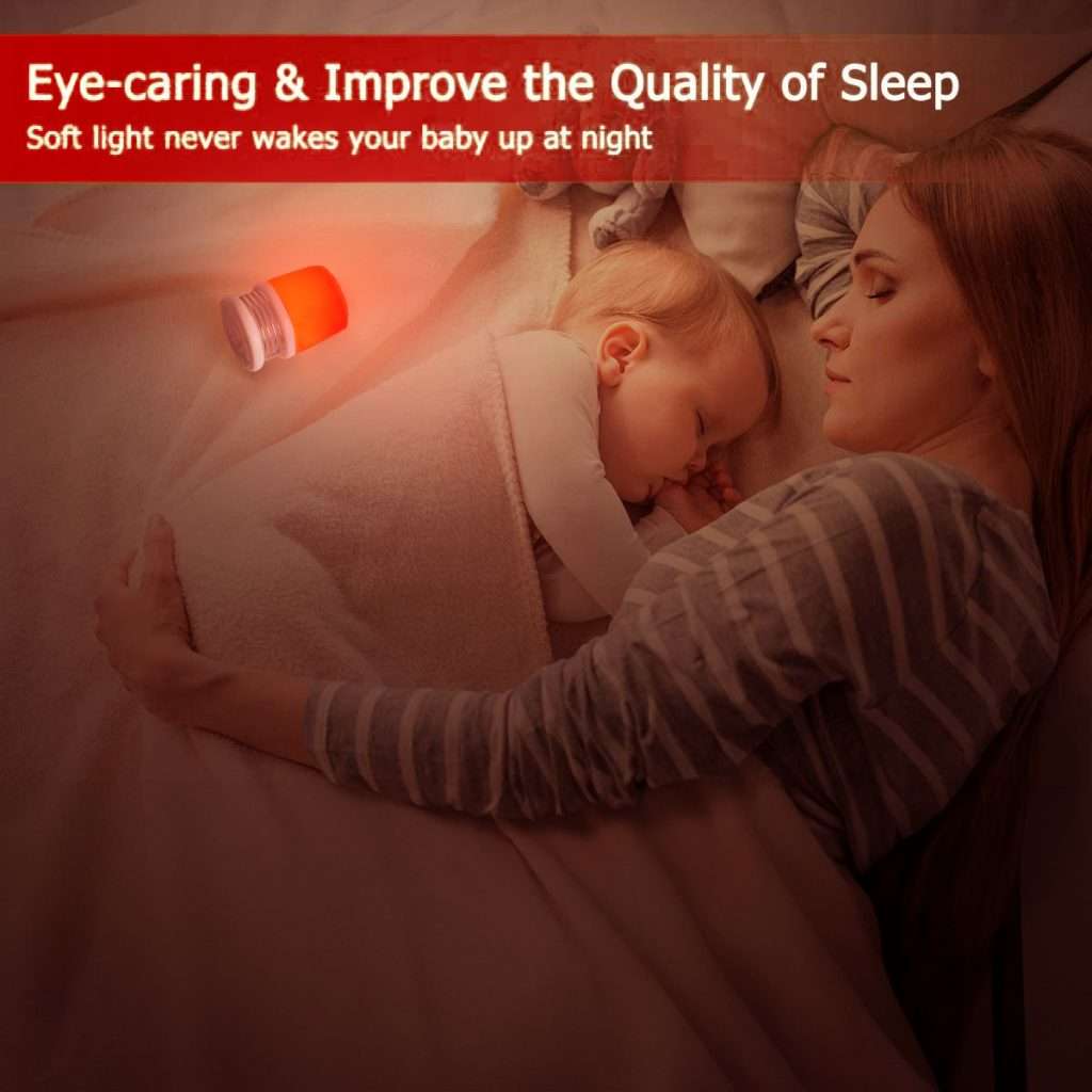 - It uses a red light source that emits a calming glow, promoting healthy sleep for people of all ages. Unlike blue light, it avoids disrupting sleep patterns.